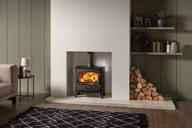 The Stovax County 5 Widescreen Fixed Grate Wood Burning and Multi-fuel Ecodesign stove brings presence and impressive flame visuals in equal measure. With a wider firebox than the County 5, the County 5 Widescreen offers the same great flame visuals and 5kW heat output, but with a slimline depth that’s designed to be used where a shallower depth is required. The County 5 Widescreen is designed to suit both traditional and modern interiors and features a charming rustic exterior and responsive slide controls for easy heat management.