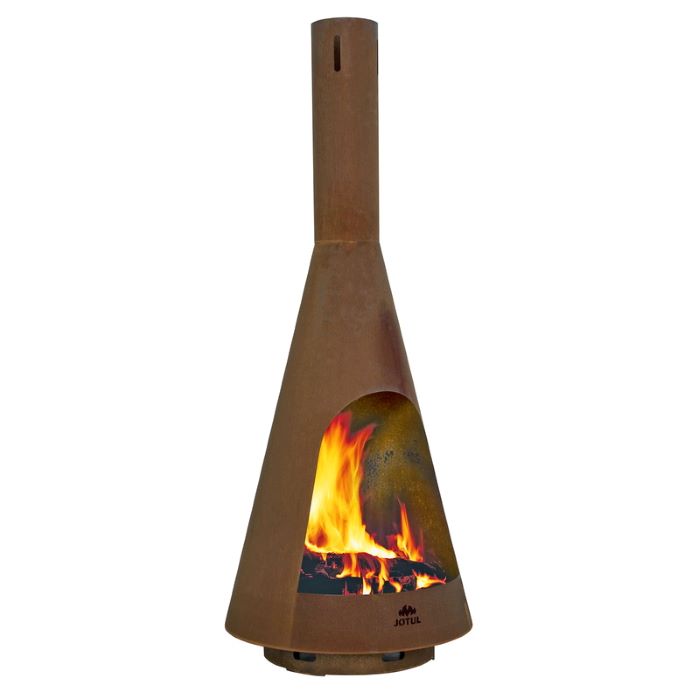 The FRØYA. There is no need to hesitate to use your outdoor fireplace even if the temperature sinks below freezing. Just fire up your outdoor fireplace to create a cosy atmosphere and gather family and friends outside regardless of the temperature. The heat and light it provides, creates an inviting mood for all social settings. The Jøtul Frøya is available in corten steel and is designed to withstand all types of weather all year long. It is designed to make your outdoor space even more inviting.