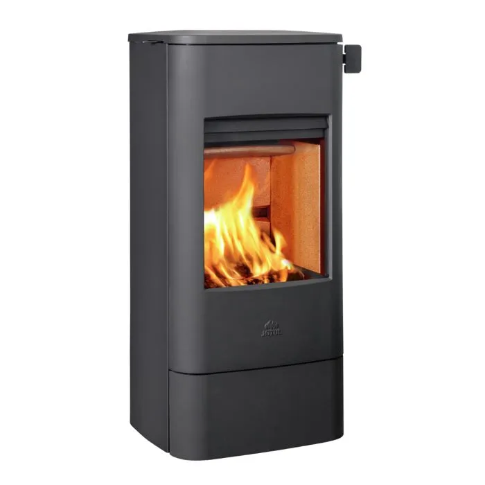 The F 232. This wood-burning stove has simple, clean lines, which give it a timeless expression. Hareide Design has utilised the design-friendly properties of cast iron and designed a stove with a soft overall impression and great flame view. Jøtul F 232 comes with or without side glass. The cool-to-touch handle is located on the top of the door. A magnetic door closure mechanism makes the heavy, solid door easy to close. This is a furnace with ground breaking combustion technology, which allows for easy installation and retrofitting. Integrated supply air through the chimney makes the F 232 ideal for new, modern low energy houses built according to today’s requirements. The stove can be connected to an existing flue and standard steel flue without supply air.