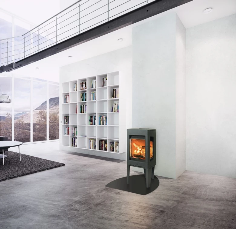 The F 163 wood burning stove is part of the F 160 series which consists of five main variants, with or without side glasses and with different leg options and cast iron bases. Jøtul F 163 is characterised by its large side glasses and three sturdy legs that give the wood stove an easy and modern look. There are also different finish options and you can choose either black paint or maintenance free white enamel. You can also choose an extra feature of a decorative and heat retaining top made of soapstone which retains more heat while the fire is burning. The wood stove is designed for modern living and is suitable for low effect heating. It burns at an optimal level even at 3kW.