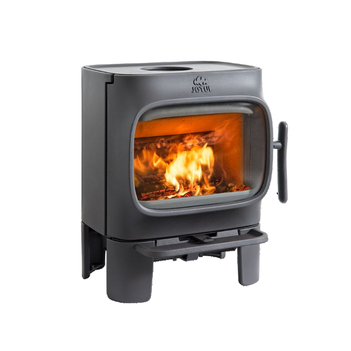 The F 105 R SL. The Jøtul F 105-series has a confident and friendly character. In spite of its size the Jøtul F 105 is a wood stove that stands out from the rest. Some of the distinctive design elements of this short log burner include the large horizontal glass door, which offers a great view to the fire and the intuitive air control that make it very user friendly. The wood stove is available on traditional legs or on a base. An ash lip and soapstone top can be fitted as an optional accessory. Jøtul F 105 is designed to perform efficiency at low burn rates, while being robust enough to fend off cold snaps. Jøtul F 105 also offers different finish options and you can choose between either black paint and maintenance free white enamel available fall 2015. Jøtul F 105 is adapted for low energy homes.